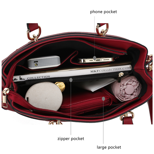 • POCKETS: Interior features a wall zip pocket, two slip pockets and a center zip compartment. Exterior features a back and front zippered pocket.