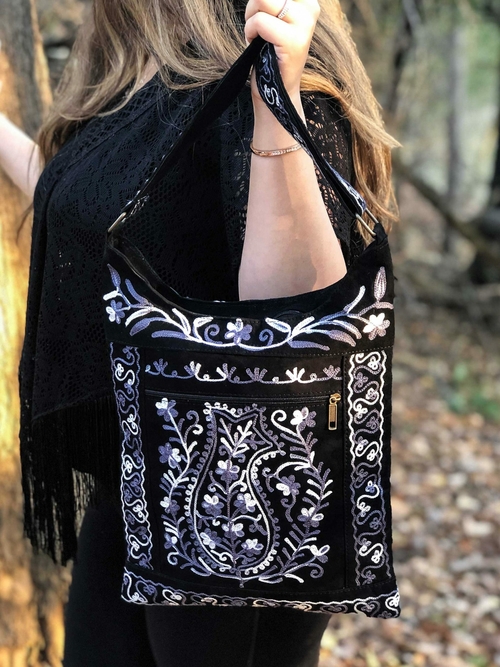 We believe fashion should be authentic, affordable and kind to planet Earth. That’s why our accessories are handmade from natural or recycled fabrics by the most talented artisans of Kashmir - the “UNESCO designated city of crafts”. These bags are sustainably made from offcut suede, which would have ended in a landfill. It helps in conserving resources and avoids waste.