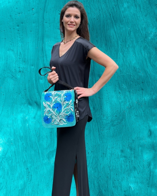 This versatile messenger bag with floral pattern comes in a variety of attractive color combinations. It is functional and trendy. Inside lining, snap closure, back zip pocket, zip cell phone pocket inside, adjustable suede strap.