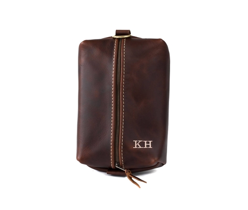 Make your Heirloom Toiletry Bag truly yours with our personalization options. You can choose to have up to three letters (A-Z, 0-9) fire branded or embroidered onto the bag, adding a unique touch that reflects your personality. Additionally, a handle is available for easy carrying, making it convenient to transport your toiletries wherever you go.