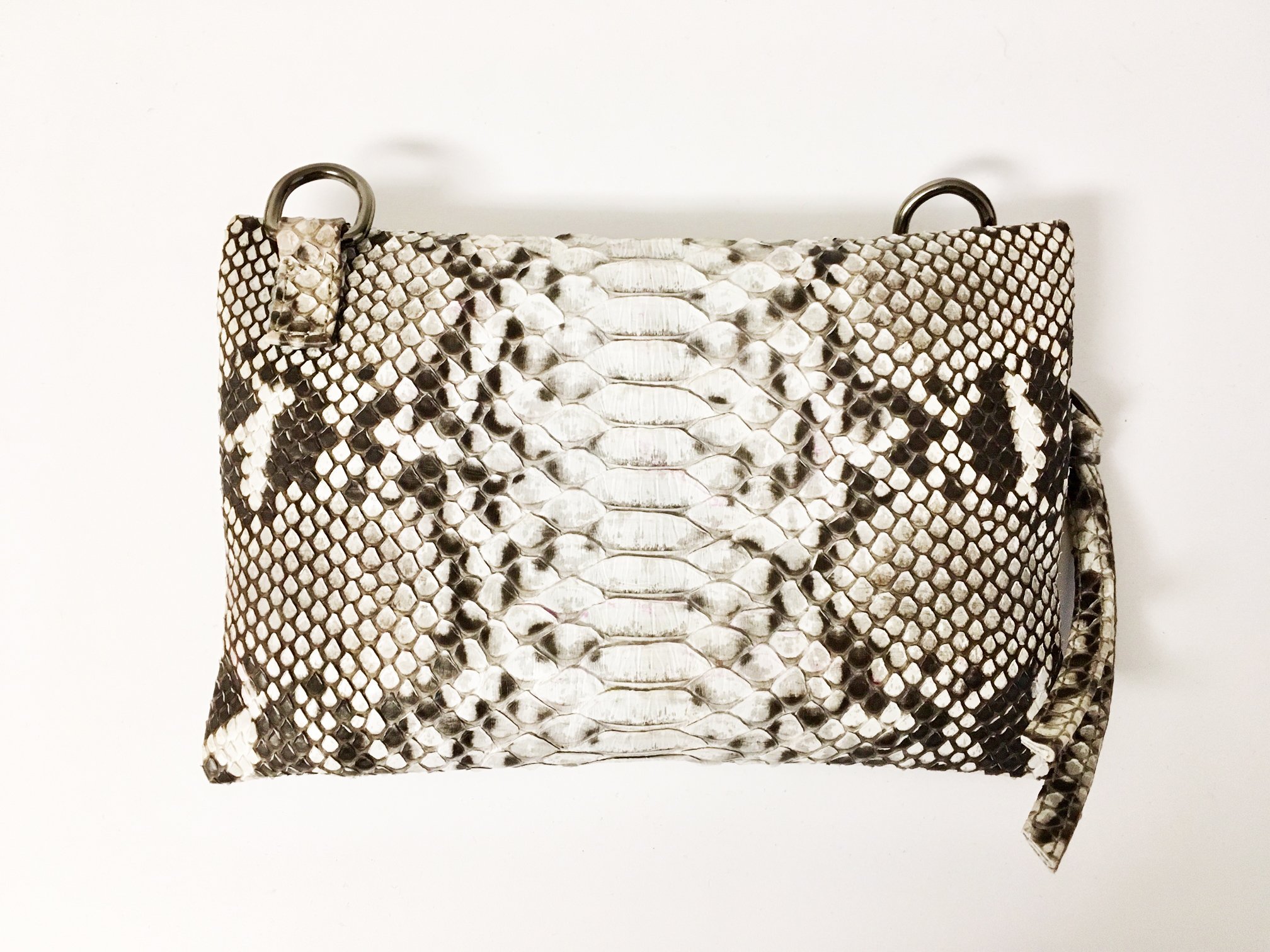 Featuring a natural color that enhances the beauty of the real python skin, this mini crossbody is both chic and sophisticated. The sleek silhouette is perfect for day-to-night transitions, making it an ideal choice for various occasions, from casual outings to elegant events. The edgy look of the python leather adds a touch of boldness to your ensemble, ensuring you turn heads wherever you go.