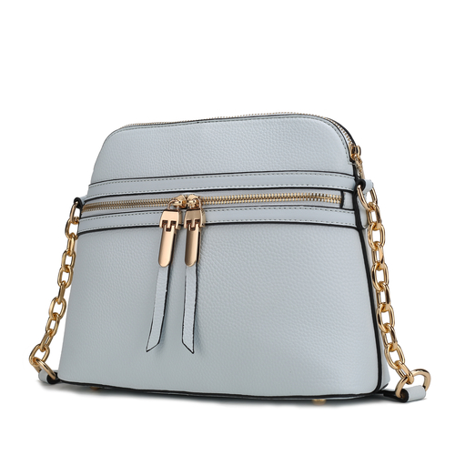 The exterior features a spacious front zipper pocket and a wide back slip pocket