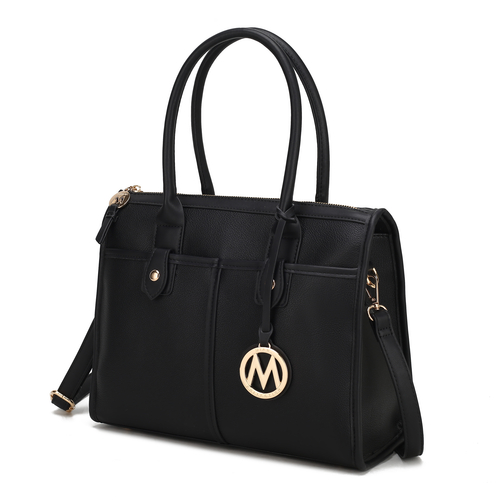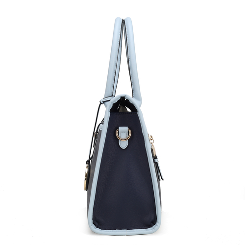 Equally versatile and sophisticated, our structured Livia Satchel Bag is a must-have. Crafted from pebble high-quality vegan leather with a smooth color block trim finish, this style will become your everyday essentials. Designed with gold-tone embellishments, unzips it to reveal a fully lined interior with a wall zippered pocket and two slip pockets. The exterior features a convenient back zip pocket and two front slip pockets with a snap fastening. You can use the two top handles to carry the Livia Satchel or attach the adjustable crossbody strap. This style comes with our signature round emblem on a strap for decoration. The Livia satchel Bag has a flat base and feet for stability.