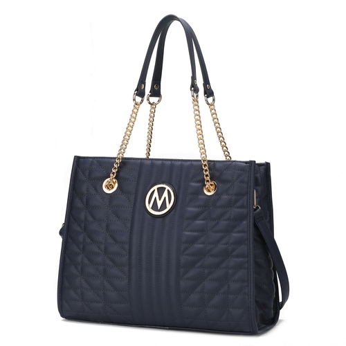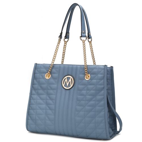 Our Makenna Shoulder Bag is an elevated style for everyday wear. Crafted from luxe smooth vegan leather, this handbag features a quilted pattern and gold-tone hardware for tactile glamour. Open the top zipper closure to reveal a fully lined well-organized interior with two slip pockets and a wall zip pocket. The exterior features a zippered back pocket, perfect to keep all your small items easy to reach. This style has a chain-link shoulder strap for an ultra-luxe finish or you can attach the adjustable strap to wear it crossbody. This style has a flat base and feet for stability. The Makenna Shoulder bag is the perfect style for storing all your daily essentials.