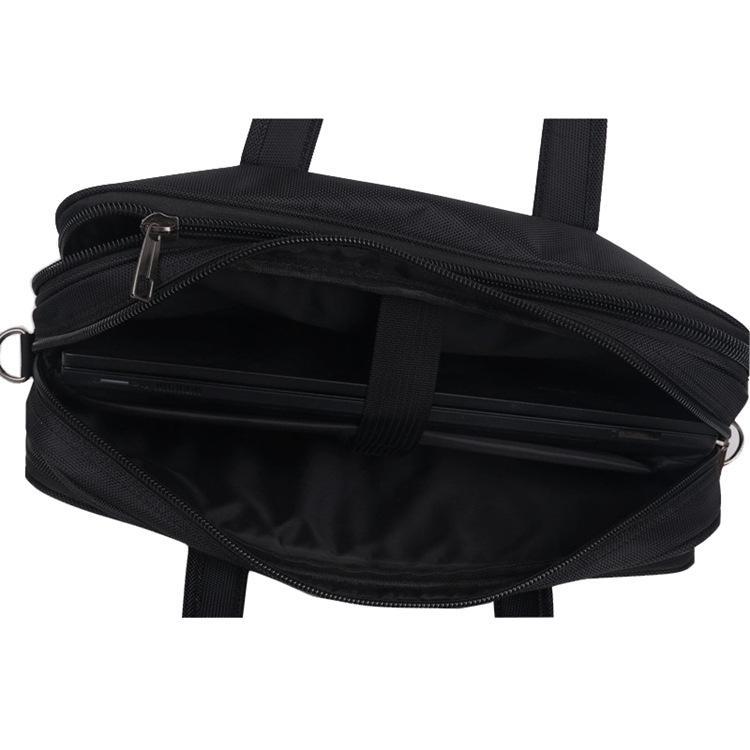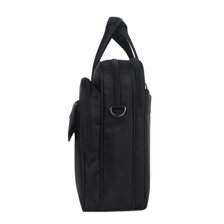 Men's Black Oxford Cloth Waterproof Messenger Bag with multiple pockets and adjustable strap, ideal for business and daily use.