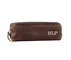 A stylish Minimalist Shave Bag made from premium leather, featuring a durable nylon lining and a brass zipper, perfect for travel.
