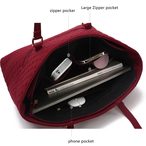 Dropship MKF Collection Hallie Solid Quilted Cotton Women Tote Bag by Mia k