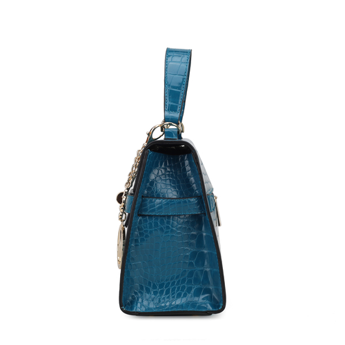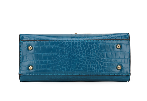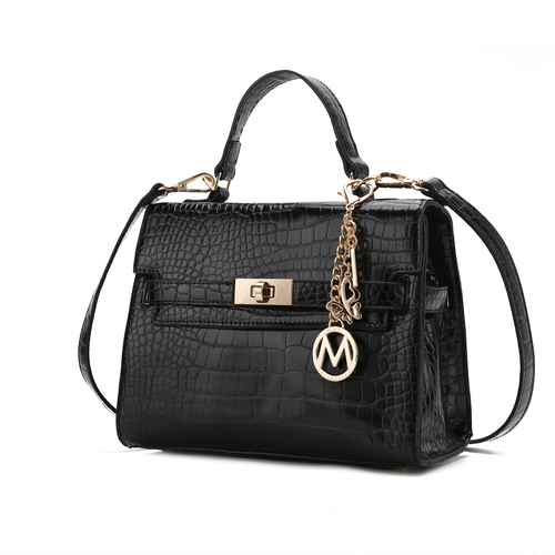A pragmatic yet statement-making accessory, our Naomi satchel is an instant icon. Crafted from luxe crocodile-embossed vegan leather and silver-tone hardware for a polished finish, you will love this refined structured style. It features side gussets and when you open the turn lock closure, it will reveal an interior where you will easily hold a day’s worth of essentials, with a wall zip pocket and a slip pocket. The exterior is accented with a beautiful keychain with our round M emblem on it and it features a back zippered pocket. Detach the adjustable crossbody strap to carry it by the top handle when the mood strikes. The Naomi Satchel bag has a flat base and feet for stability.