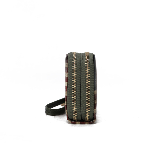 Effortlessly organize your cards, coins, and cash in the contemporary-cool style of our sleek double-zip-around Uriel Wristlet wallet. Rendered in a printed patriotic pattern in high-quality vegan leather, with polished hardware for a luxe finish. The zip-around design opens to reveal an array of card slots and a zip pouch for coins. You can also put your phone inside it. Slip it into your favorite tote, carry it by the wristlet strap or wear it hands-free on days when you want to travel light.