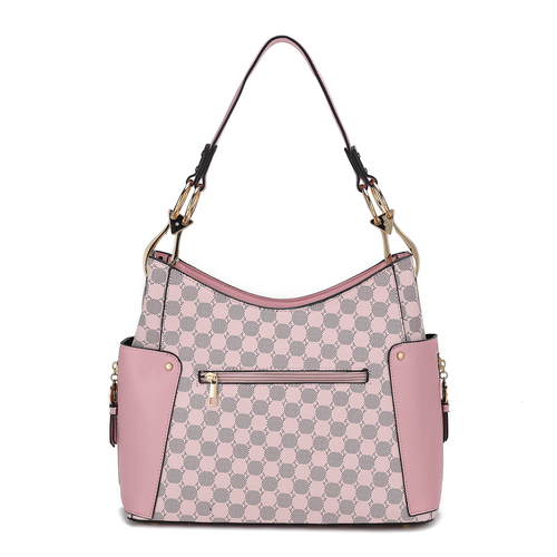 • Crafted from high-quality faux leather, the bag combines durability with a luxurious feel. The circular print pattern features a harmonious blend with the smoothy trims, creating a visually appealing and dynamic look, complemented by elegant gold-tone hardware.