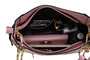 • Inside the bag, you will find a well-organized interior. It features a wall zippered pocket and two slip pockets for small items like your phone or keys. The exterior features a convenient back zipper pocket and two decorative side pockets.