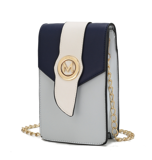 • Our Veronica Phone Crossbody Bag us a small wonder. Crafted from high-quality vegan leather with a color-block finish, and designed with gold-tone hardware, the Veronica Phone Crossbody Bag will stylishly keep your phone, your essentials, and your card case within arm’s reach. Opens it to reveal a spacious fully lined interior, with 4 card slots. The exterior features a convenient back slip pocket.  The detachable chain-link hardware lends tactile appeal. Wear it hands-free on days when you want to travel light.