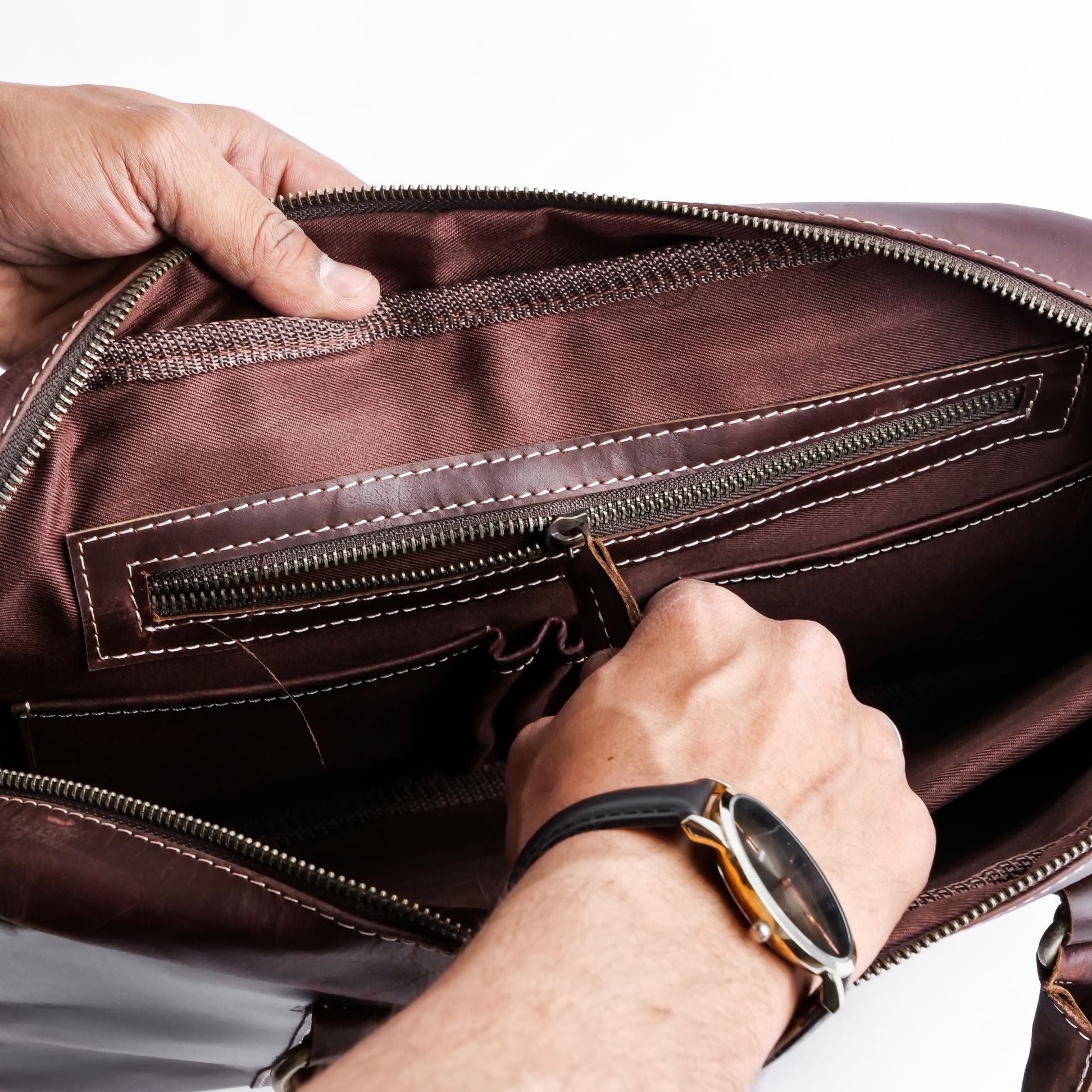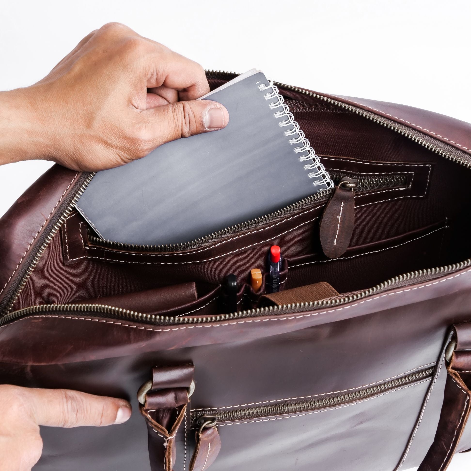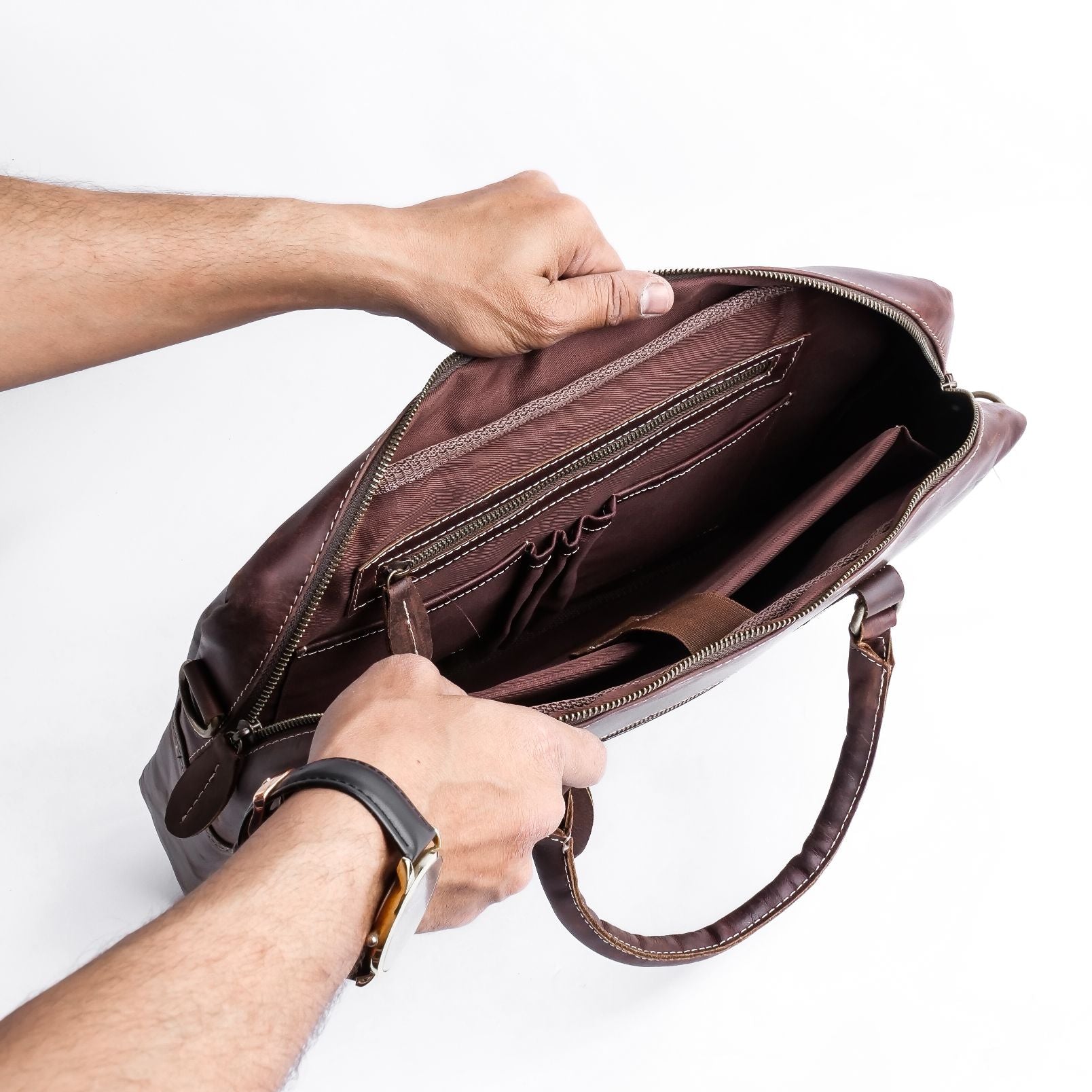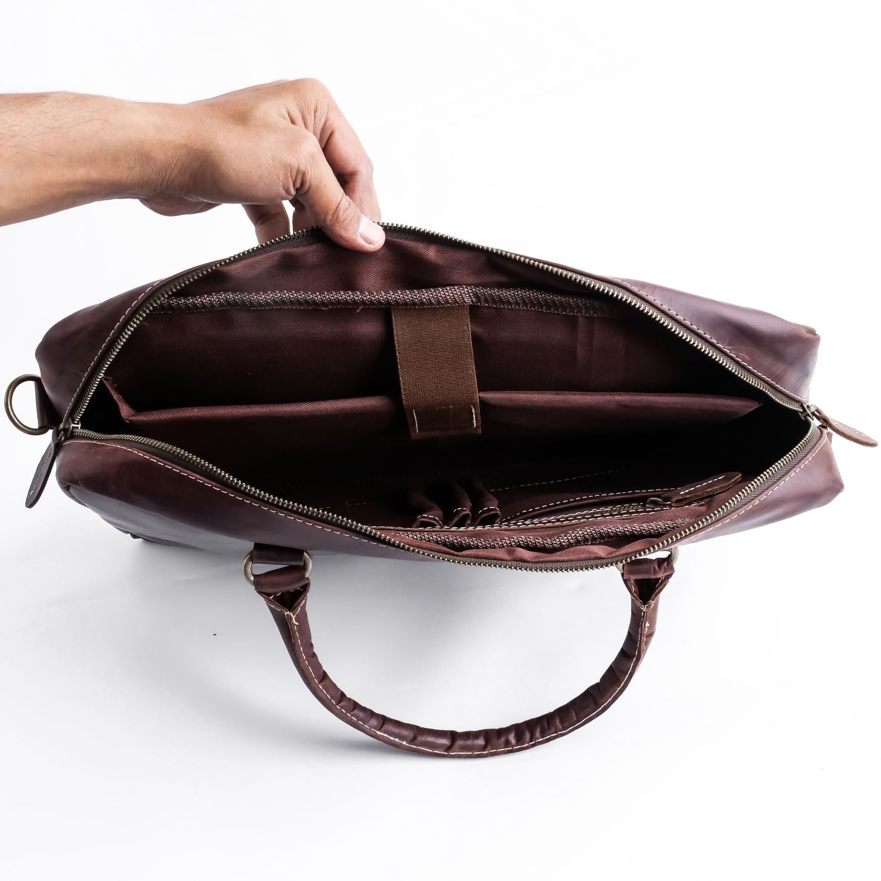 One of the standout features of The Maverick Vintage Leather Laptop Bag is its multiple internal pockets. These pockets are perfect for organizing cables, chargers, keys, and other small items, allowing you to keep everything in its place. No more rummaging through your bag to find what you need; with this bag, everything is easily accessible and well-organized.