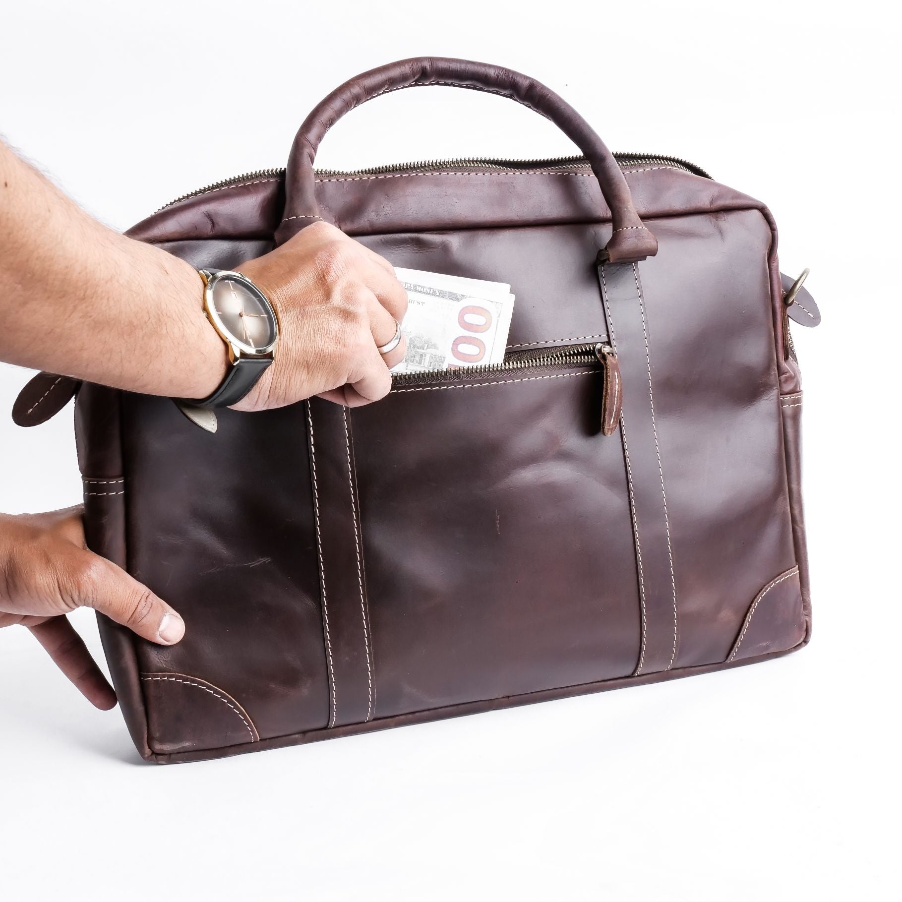 This laptop bag comes with a detachable and adjustable shoulder strap, providing you with the flexibility to carry it in a way that suits your style. Whether you prefer to wear it over your shoulder or carry it by the top handle, The Maverick Vintage Leather Laptop Bag adapts to your needs. The comfortable strap ensures that you can carry your essentials with ease, even during long commutes or travel days.