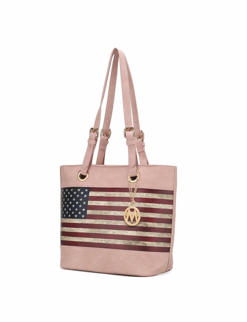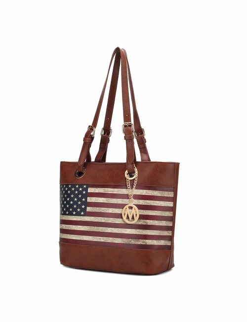 Vera Vegan Leather Patriotic Flag Pattern Women Tote Bag