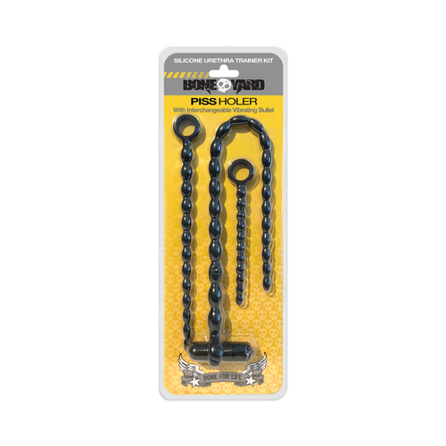 The Piss Holer is a sounding kit for the beginner to the advanced enthusiast. The kit includes three silicone sounding rods in graduated lengths and thicknesses. The beaded flexible sounds bend with the body, to make it easier to go deeper and hit your prostate. The beaded design allows lubricant to stay between the beads as you insert them, to make it easier to slide in without re-lubricating so often. The kit also includes an interchangeable 7-speed vibrating bullet, with 7 different strengths and patterns that travel down the entire length of each sound. When inserted through the circular opening on the top of each sound, the bullet also acts as a handle to easily guide each sound while inserting for that unique prostate sensation that you crave. Made of premium, medical grade silicone. These urethral sounds are easy to sterilize and body safe for an all new sounding experience. Soft Touch Silicone 3 Graduated Sizes Intense Stimulation Super Flexible Stimulates Prostate Small Length: 5.5 inch (14 cm) Largest Width: 0.35 inch (9 mm) Medium Length: 8.7 inch (22 cm) Largest Width: 0.39 inch (10 cm) Large Length: 16.1 inch (41 cm) Largest Diameter: 0.47 inch (12 mm) This product is safe with all lubricants, completely hypoallergenic, non-irritating and compatible with sensitive skin.The Piss Holer is a sounding kit for the beginner to the advanced enthusiast. The kit includes three silicone sounding rods in graduated lengths and thicknesses. The beaded flexible sounds bend with the body, to make it easier to go deeper and hit your prostate. The beaded design allows lubricant to stay between the beads as you insert them, to make it easier to slide in without re-lubricating so often. The kit also includes an interchangeable 7-speed vibrating bullet, with 7 different strengths and patterns that travel down the entire length of each sound. When inserted through the circular opening on the top of each sound, the bullet also acts as a handle to easily guide each sound while inserting for that unique prostate sensation that you crave. Made of premium, medical grade silicone. These urethral sounds are easy to sterilize and body safe for an all new sounding experience. Soft Touch Silicone 3 Graduated Sizes Intense Stimulation Super Flexible Stimulates Prostate Small Length: 5.5 inch (14 cm) Largest Width: 0.35 inch (9 mm) Medium Length: 8.7 inch (22 cm) Largest Width: 0.39 inch (10 cm) Large Length: 16.1 inch (41 cm) Largest Diameter: 0.47 inch (12 mm) This product is safe with all lubricants, completely hypoallergenic, non-irritating and compatible with sensitive skin