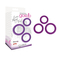 Set of 3 silicone cock rings in graduated sizes: small, 1.875 in.; medium, 2 in.; large 2.25 in. diameters. Use the smallest, tightest-fitting ring to constrict blood flow. Switch to the medium-size ring for a less intense fit. Wrap the largest ring around the scrotum to delay ejaculation. Use individually or all at once for ultimate control.