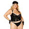 Stretch faux leather and textured stretch mesh cropped bustier and strappy G-string set with geometric gold hardware accents Underwire, double-layer cups with adjustable shoulder and halter strapsBodice has keyhole detail, support boning, and adjustable hook-and-eye back closureGloves not includedSize 3X: Size 24-26, Cup DDD/F, Weight 260-300 lbs., Bust 52-54", Waist 46-48", Hip 54-56"