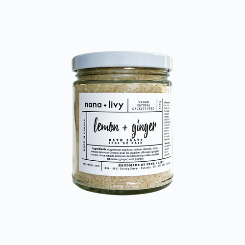 Handcrafted with ingredients for an extra skin boost, Lemon + Ginger Bath Salts will give you the most lemony and therapeutic bath experience by improving your blood circulation and nourishing your skin.