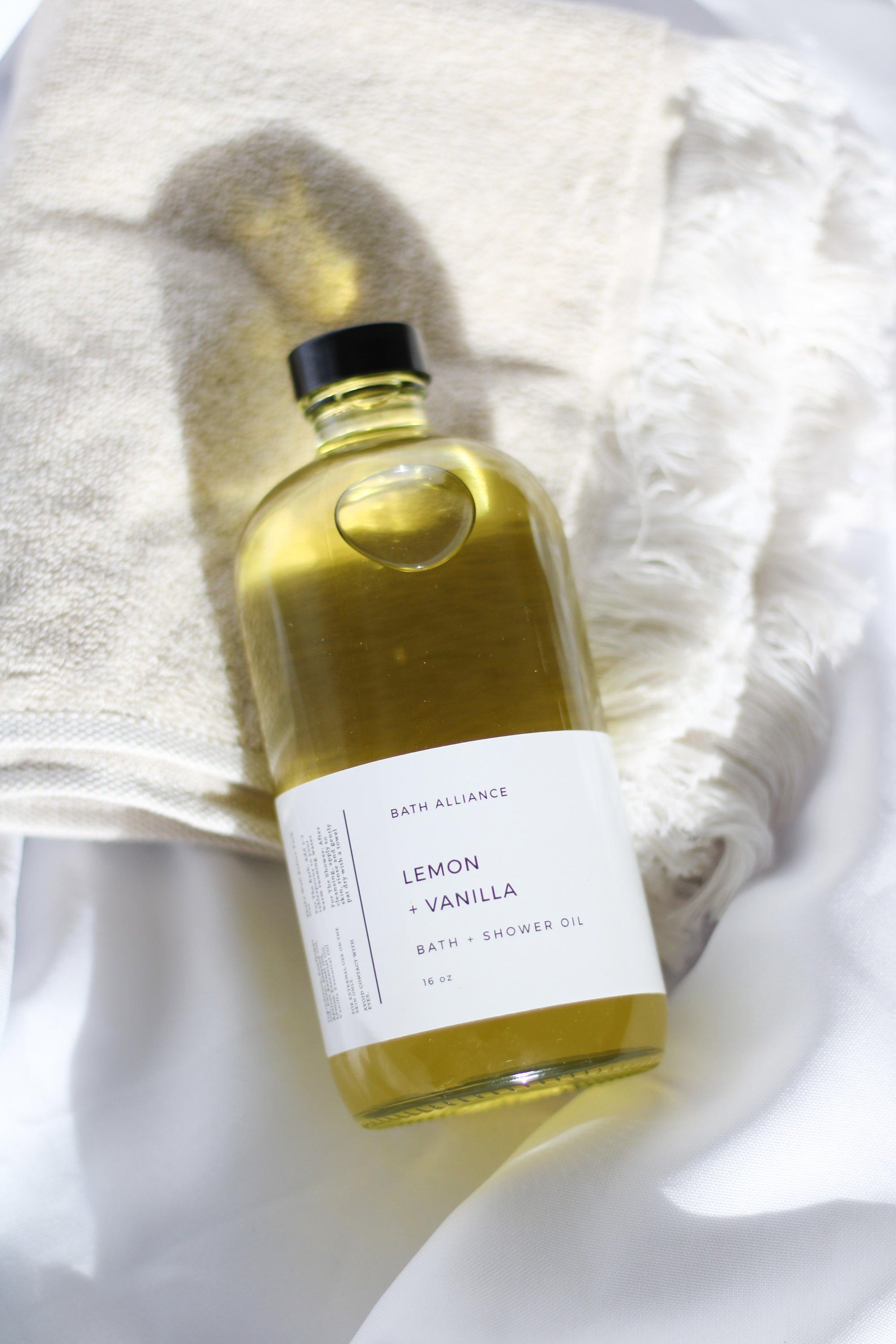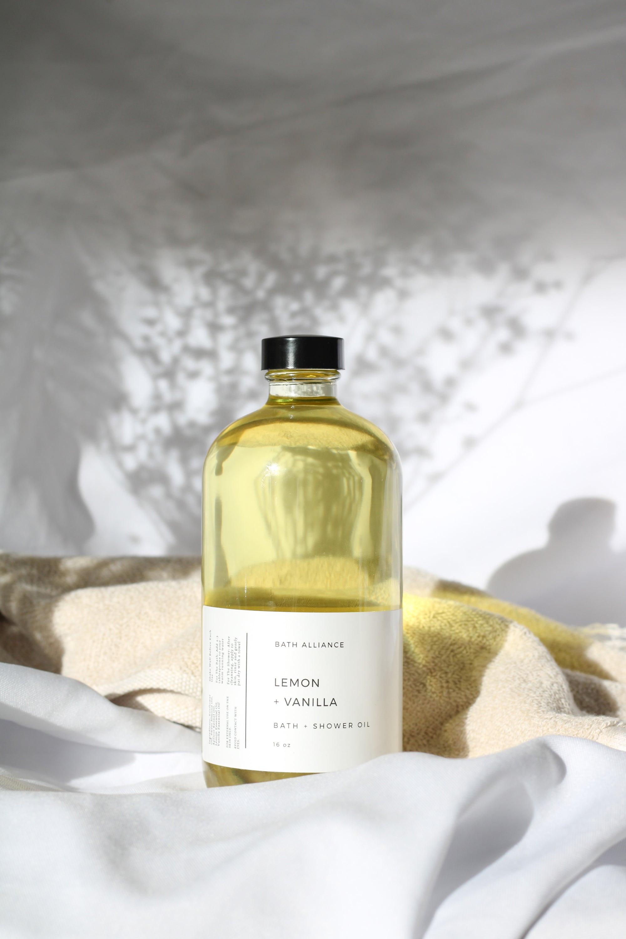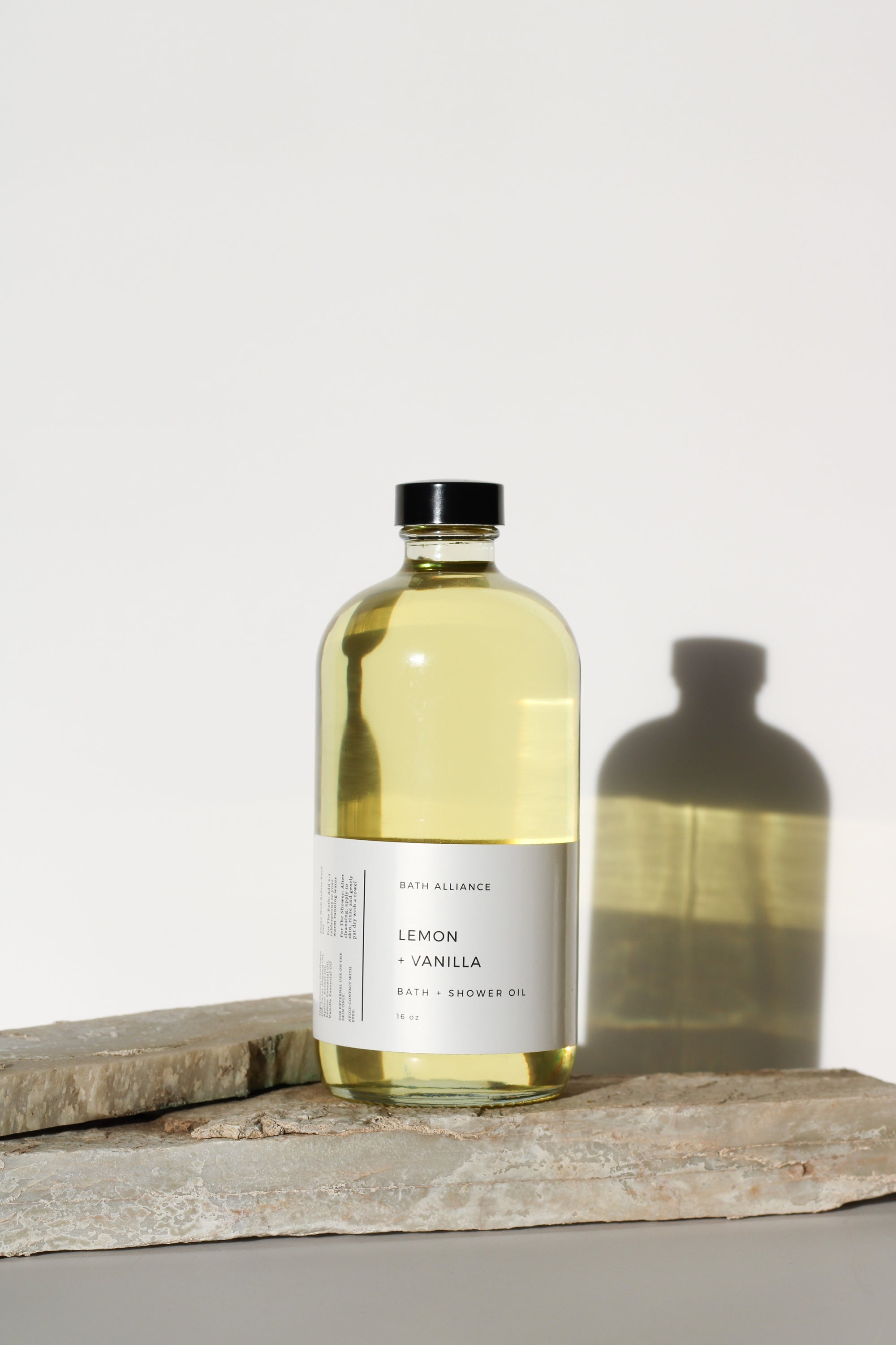 Using our Lemon + Vanilla Bath + Shower Oil is simple and versatile: