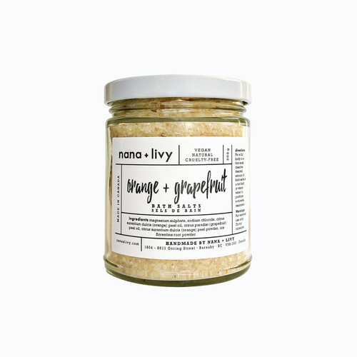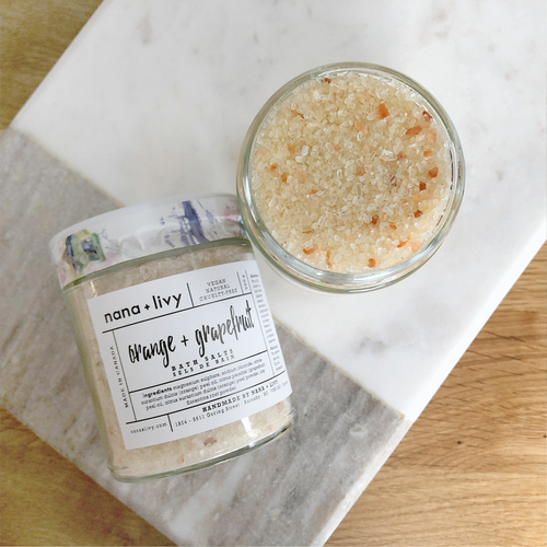 Handcrafted with skin-loving ingredients, Orange + Grapefruit Bath Salts will give you the most luxurious bath experience by soothing your sore body and soften your skin with our high-quality sea salts and epsom salts.