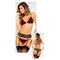 You deserve the crown, and this three-piece set is fit for royalty. Contrast eyelash lace bra top, eyelash lace garter belt with little black bow, and matching contrast lace boyshort with beautiful galloon lace back. *Thigh-high not includedSize S/M