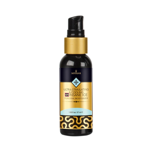 Sensuva's Personal Moisturizer Line was Created for people who are looking for healthier choices when it comes to their sexual wellness products. All of our healthy formulas include a combination of natural, organic, food-grade, eco-cert, and EU Certified ingredients. They are all glycerin and paraben-free, and pH-balanced. Sensuva's Personal Moisturizers are a perfect choice for anyone, and the best choice for those with allergies and sensitivities.ON Insane is now available with an added cooling sensation! For some, this may feel even more intense than the original formula because the cooling effect creates an additional layer of sensation. Some may feel the sensation of movement inside the body, plus stimulating, cool pulsations and buzzing directly on the clitoris. This formula is a water-based hybrid and is safe to use with silicone and latex products. Ideal to pair with ON Arousal Oil for Her for an even wilder experience.Ingredients: Water, Hydroxyethyl Cellulose, Dimethicone, Propanediol, Isopropyl Palmitate, Sorbitan Monostearate, Mentha Piperia (Peppermint) Oil, Potassium Sorbate, Sodium Benzoate, Sucralose, Zanthoxylum Americanum, Zingiber Officinale (Ginger)