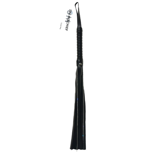 Tickle, tease or just complement your look with the S M Crystal Whip. A sexy addition to your toy box, this black slender vinyl whip boasts a single strand of clear crystals running the length of the faux leather tails. Whip measures 24 in.
