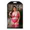 Triangle Bralette, Garter Belt with Leg Garters & Panty Brand: Tease Features: Adjustable straps and fasteners for multiple looksS-hook back closureRemovable leg gartersMaterials: 80% Nylon, 20% Spandex Color: Pink Washing Instructions: Hand wash separately in cold water. Do not bleach. Flat dry. 3X/4X Size: 18-22 Bust: 46"-49" Hips: 49"-52"