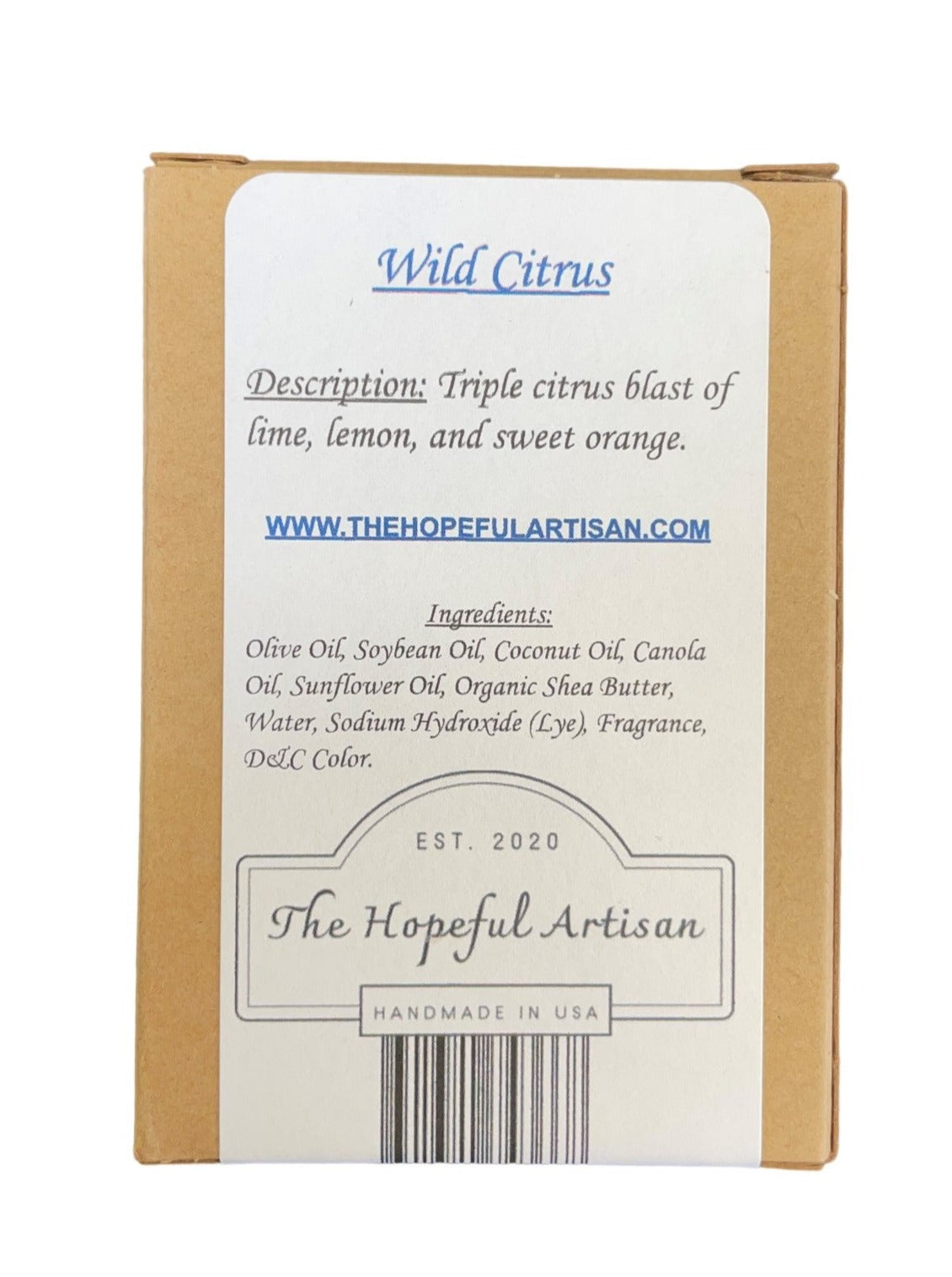 Wild Citrus is formulated with a variety of high-quality oils, including Olive Oil, Soybean Oil, Coconut Oil, Canola Oil, and Sunflower Oil. These oils are known for their moisturizing properties, helping to lock in hydration and maintain your skin's natural barrier. Additionally, Organic Shea Butter is included for its rich, creamy texture that deeply nourishes and soothes the skin.