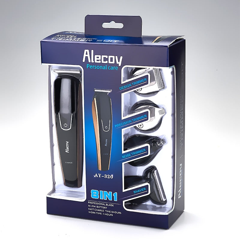The 5 In 1 USB Rechargeable Beard Nose Trimmer comes packed in its original box, which includes everything you need for a complete grooming experience. The package contains the fuselage, a USB cable for charging, five guide combs, a beard trimmer, a hair trimmer, a nose and ear trimmer, a design trimmer, a precision trimmer, a stand base, a cleaning brush, and a manual. This comprehensive set ensures that you have all the tools necessary for effective grooming.