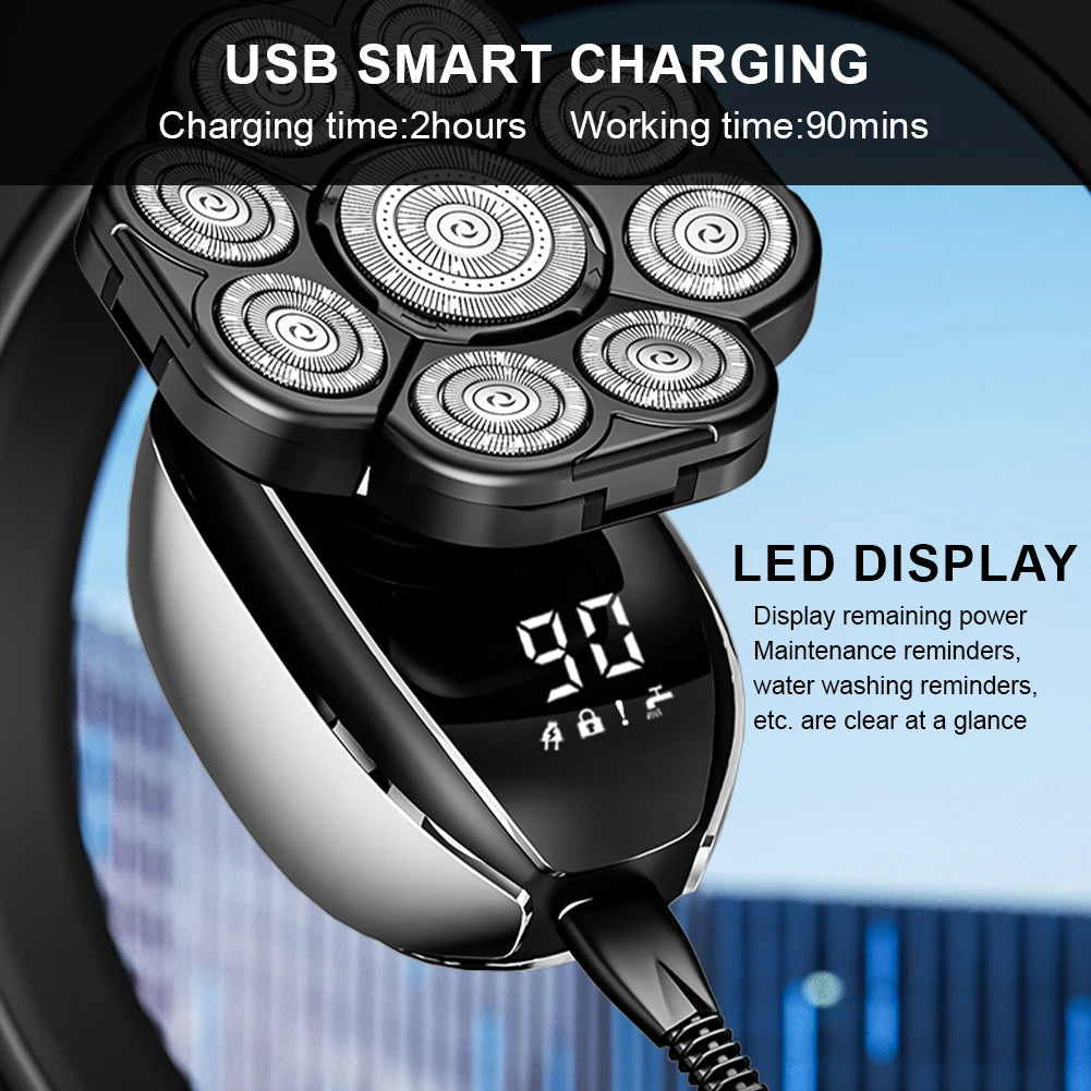 6In1 Men's Bald Head Electric Shaver with 9 blades and floating heads, designed for precision grooming and a smooth shave.