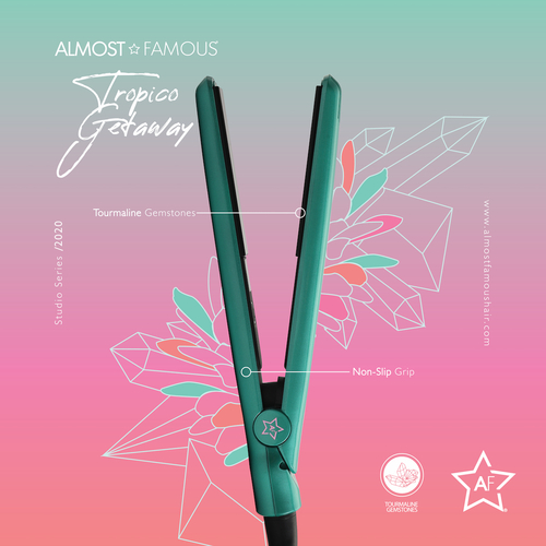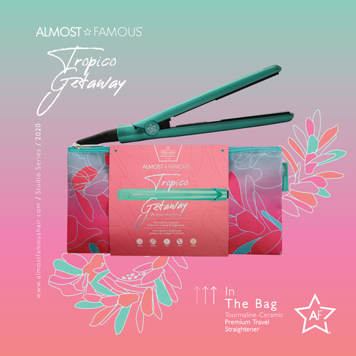 Get vacation ready with the Tropico Getaway Mini Flat Iron - featuring an exclusive designer travel pouch for convenient carrying & styling on-the-go!