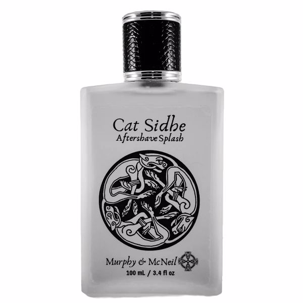 Introducing the Cat Sidhe Aftershave Splash by Murphy and McNeil, a unique grooming product that combines tradition with modern skincare. Pronounced 'Cawt-shee', this aftershave is inspired by the mythical Cat Sidhe from Celtic lore, known as spirit realm creatures resembling large black cats with white spots. These enchanting beings were often feared, yet they also symbolized good fortune, making this aftershave a perfect blend of mystique and charm.