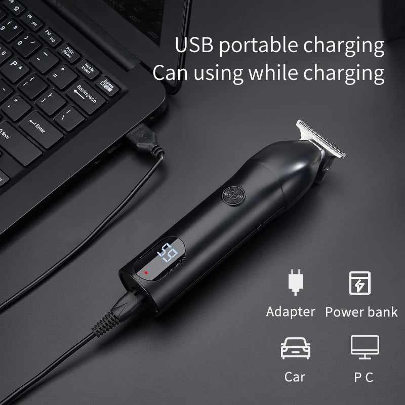 Say goodbye to tangled cords and limited mobility! The Ceramic Blade Electric Hair Clipper offers a cordless design that allows you to groom your hair anywhere you desire. Whether you're at home, traveling, or simply prefer the freedom of movement, this clipper is designed to accommodate your lifestyle. Additionally, it features a plug-and-play function, so you can continue using it even when the battery is low. The included USB charging cable makes it convenient and safe to recharge.