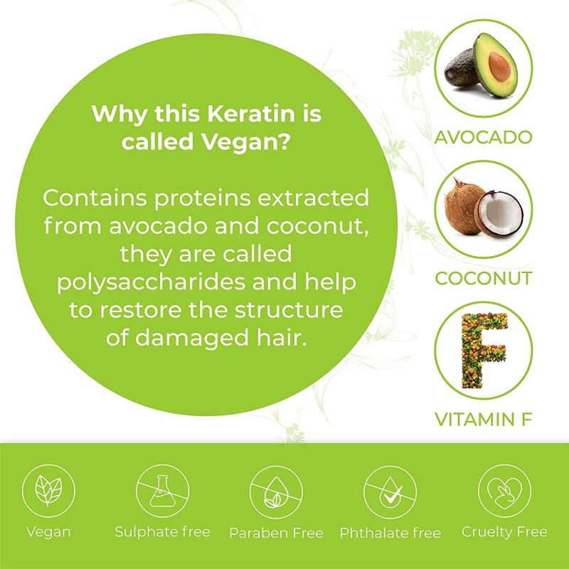 This vegan keratin treatment offers a complete salon-like experience right at home. It is perfect for individuals with all hair types, providing long-lasting effects that keep your hair looking and feeling its best. The treatment not only enhances the uniformity of the cuticular surface but also provides essential thermal protection, making it an ideal choice for those who frequently use heat styling tools.