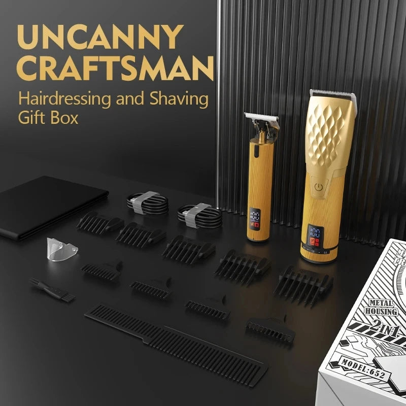 The product packaging includes everything you need to get started: a professional hair clipper, a sculpting hair clipper, multiple limit combs, two USB charging cables, a cleaning brush, a transparent protective cover, and a cloth for maintenance. This comprehensive package ensures that you have all the tools necessary for a complete grooming experience.