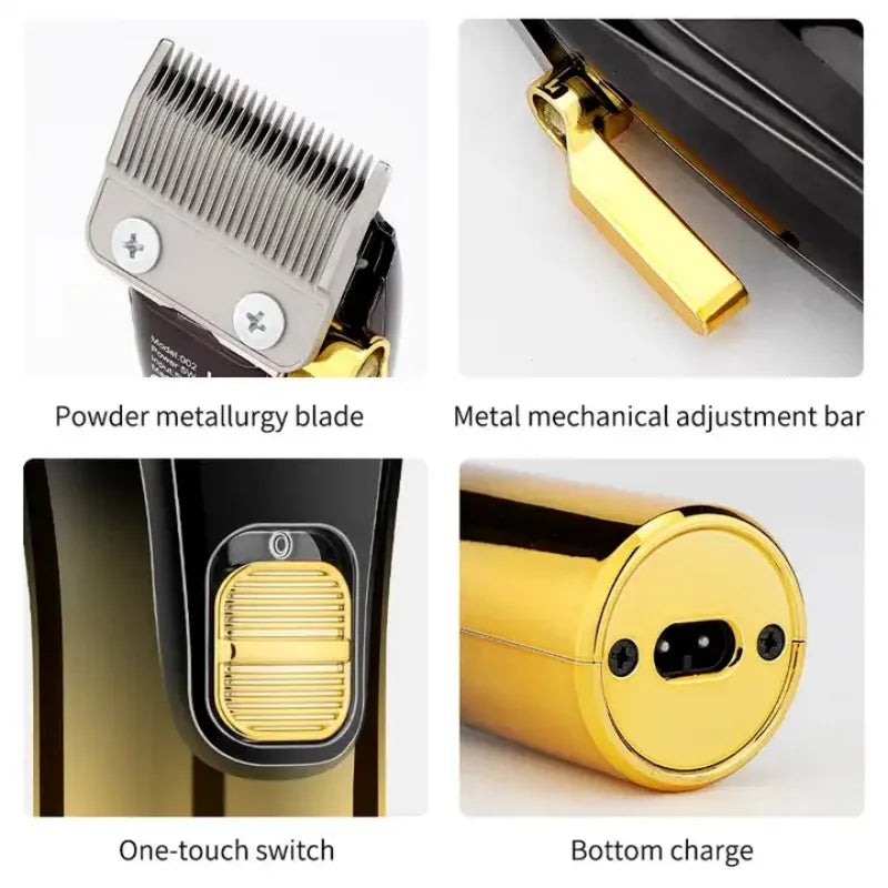 Introducing our Cordless Rechargeable Low Noise Professional Hair Clippers and Detail, designed for both professional barbers and home users who seek precision and convenience in grooming. These clippers are engineered to deliver a powerful performance while ensuring a quiet operation, making them ideal for use in any setting.