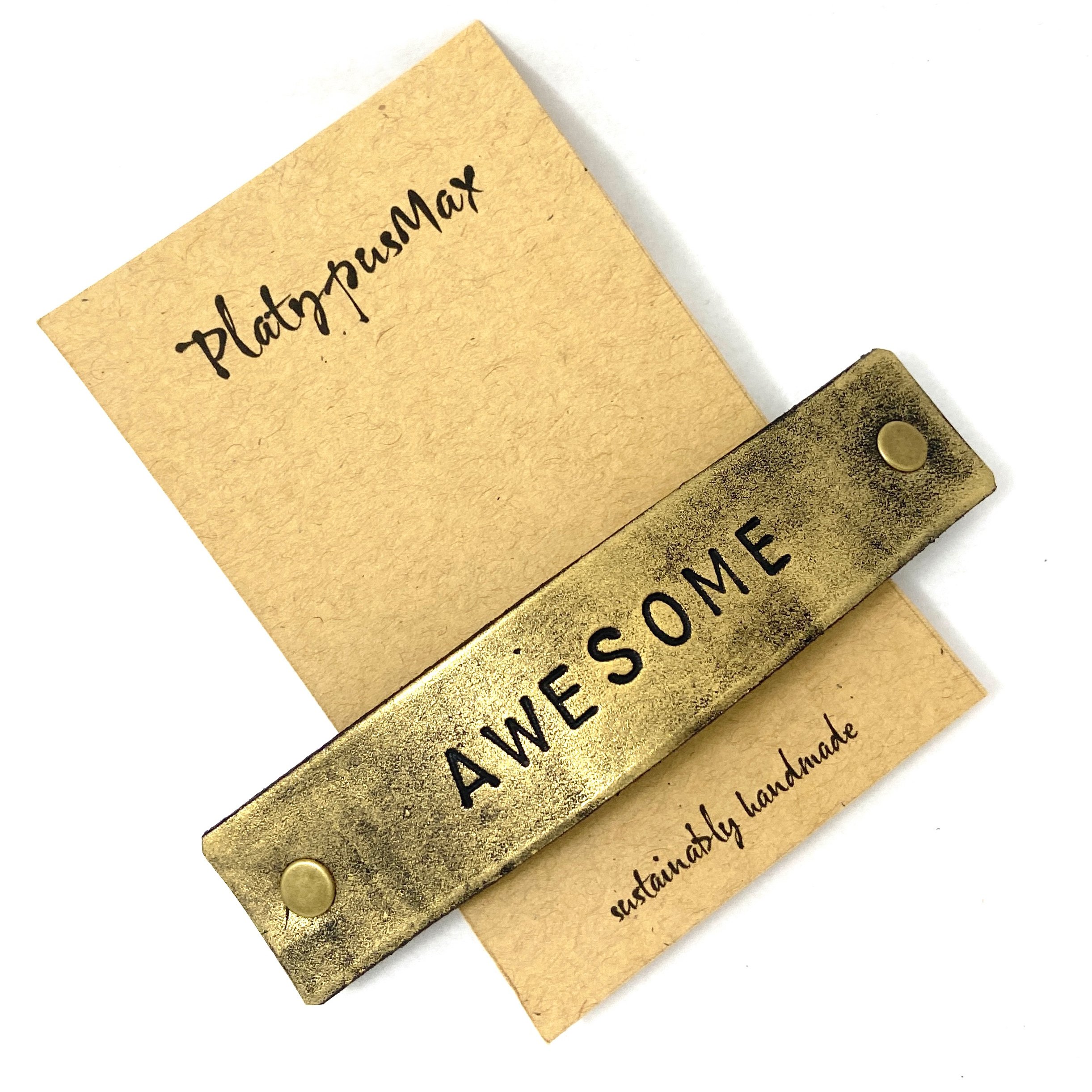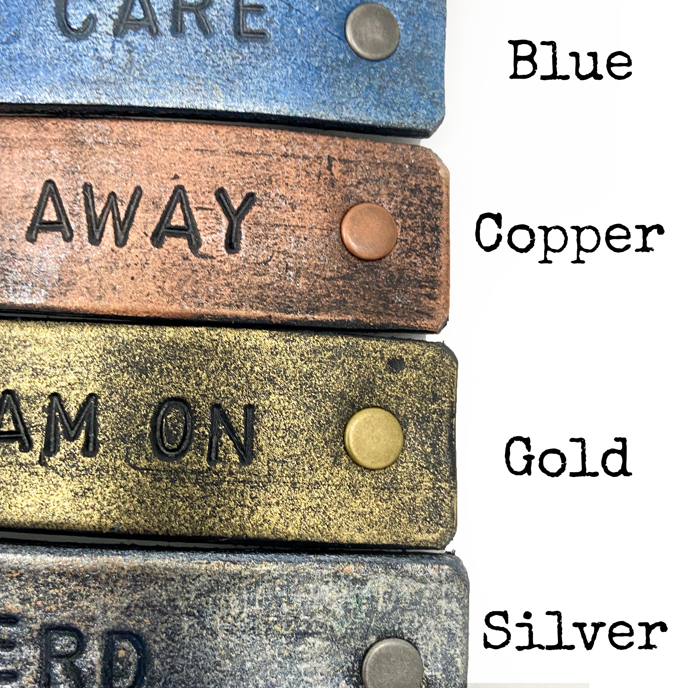 When ordering your custom leather barrette, you can choose from a variety of text options. The large size allows for up to 11 characters, while the extra-large size accommodates up to 15 characters. This gives you the flexibility to create a message that truly represents you. Please note that all text is hand-stamped, which may result in slight irregularities in spacing, adding to the charm of the product.