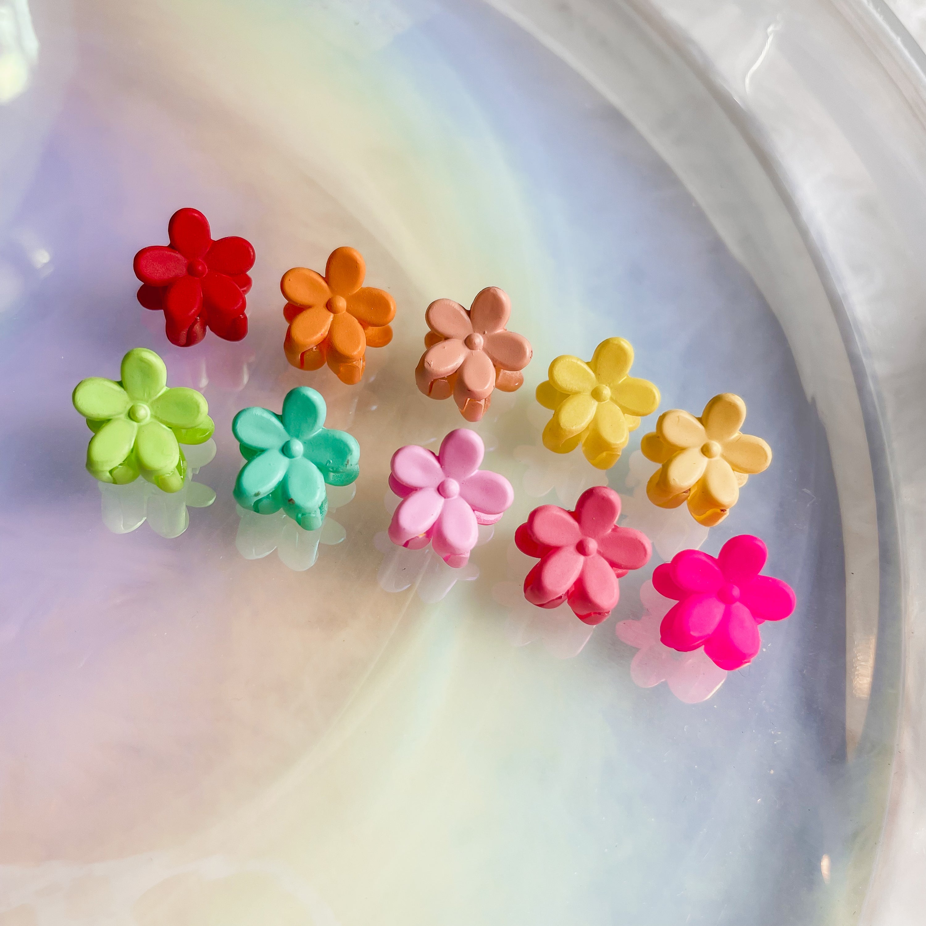 Introducing our delightful Mini Flower Clip Set, a must-have accessory for anyone looking to add a touch of charm and elegance to their hairstyle. This set includes ten beautifully crafted mini flower clips, each designed to bring a pop of color and style to your look. Whether you're dressing up for a special occasion or simply want to brighten your everyday hairstyle, these clips are the perfect solution.