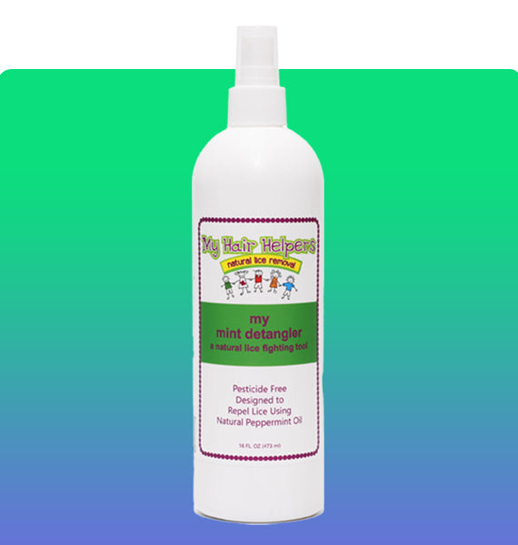 Mint Natural Hair Detangler for Kids in a spray bottle, designed for easy detangling and lice prevention, featuring a vibrant mint color.