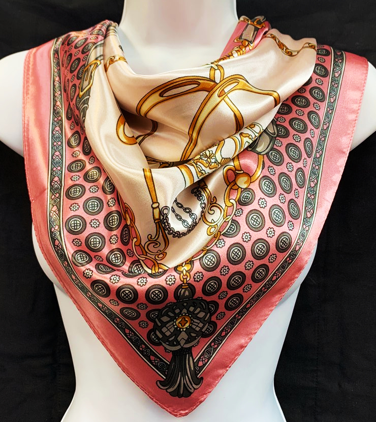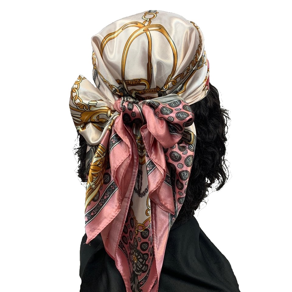 A luxurious Multi Purpose Satin Scarf measuring 35" x 35", showcasing its smooth texture and elegant design.