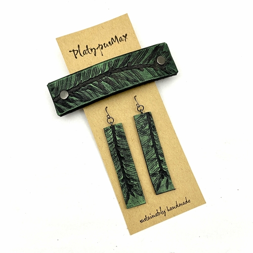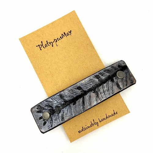 One of the standout features of our Natural Pine Branch Leather Hair Barrette is its lightweight construction. Made from hand-dyed and painted leather, it offers a rustic metallic look without the heaviness typically associated with metal accessories. The unique texture is achieved by pressing real plants into the leather, resulting in a one-of-a-kind piece that is both beautiful and functional.