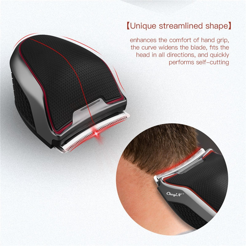 The unique streamlined shape of this hair clipper enhances comfort during use. Its ergonomic design fits perfectly in your hand, allowing for easy maneuverability around the head, neck, and ears. The curve of the blade is designed to fit the contours of the head, enabling quick and efficient self-cutting. Say goodbye to awkward angles and hello to a comfortable grooming experience.
