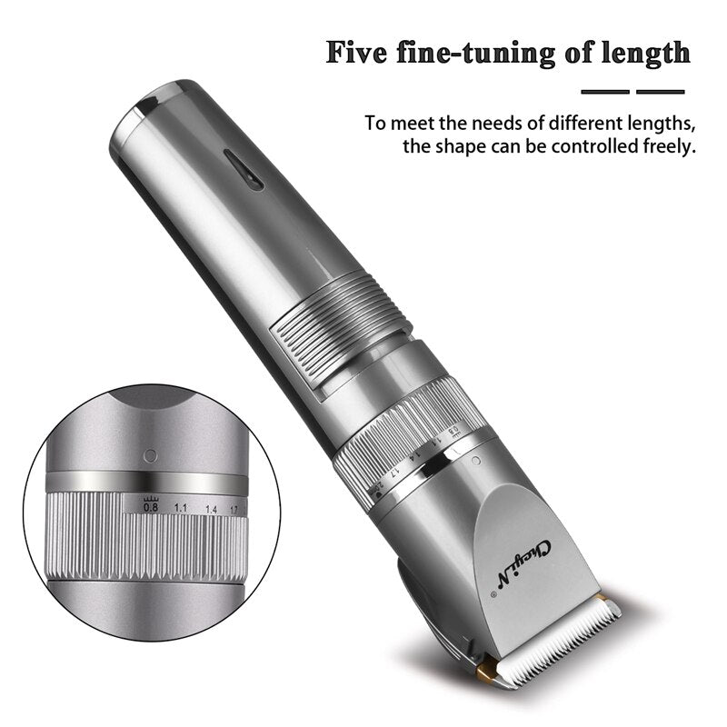 This Professional Hair Trimmer offers multiple functions including bald shaving, trimming, and sculpting. With five levels of fine-tuning for length adjustments, users can easily achieve their desired hair length, whether they prefer a close shave or a longer trim. The adjustable settings range from 0.8mm to 2.0mm, catering to various styling needs.
