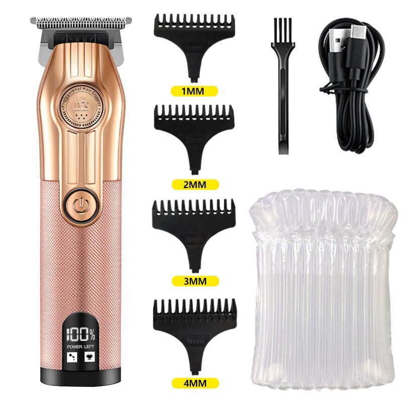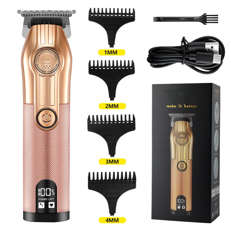 The Professional Hair Trimmer Gold Clipper for Men is the ultimate grooming tool designed for precision and convenience. This rechargeable barber clipper is perfect for achieving salon-quality haircuts at home. With a sleek gold design, it not only looks stylish but also offers exceptional performance. Whether you're a professional barber or someone who enjoys grooming at home, this hair trimmer is an essential addition to your grooming kit.
