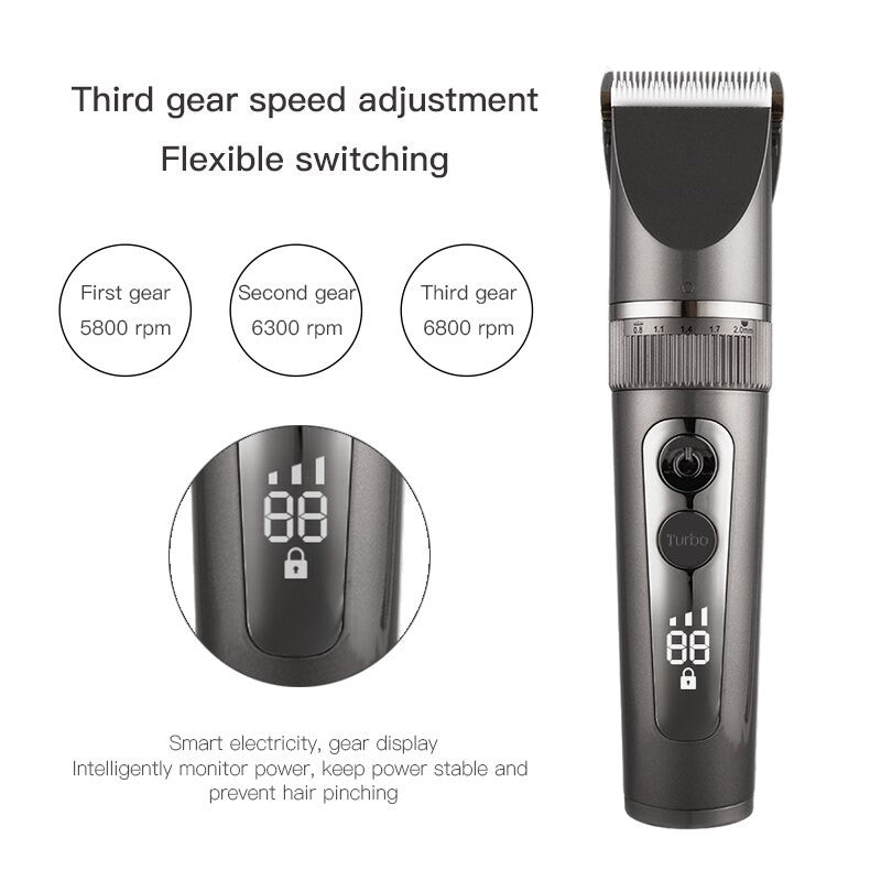 These clippers are designed to handle different hair textures with ease. With three rotational speed settings (5800RPM, 6300RPM, 6800RPM), you can adjust the speed according to your needs. The intelligent monitoring of electric quantity ensures stable power delivery, preventing any clipping or pulling during use.
