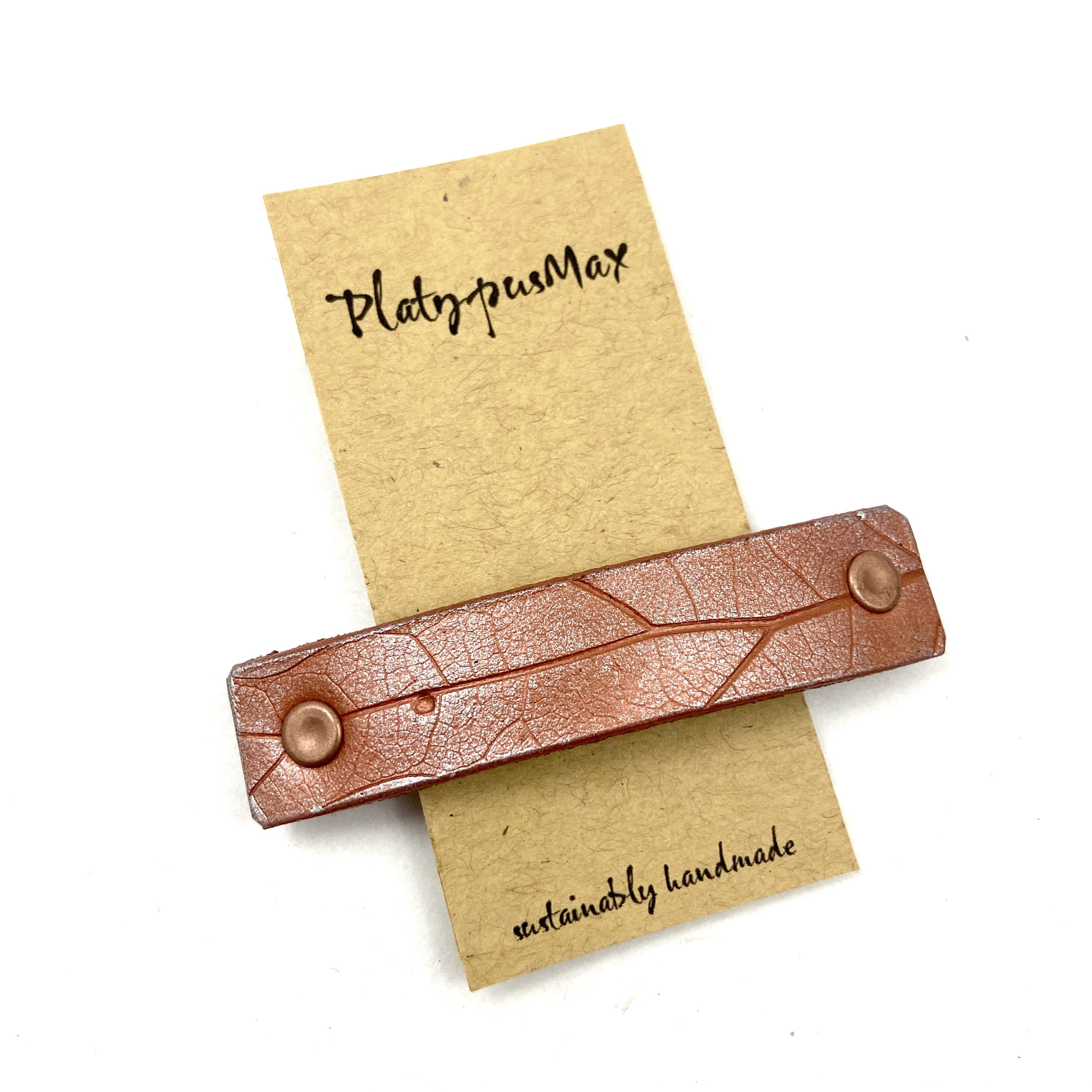 Dropship Shiny Copper Oak Leaf Imprint Leather Hair Barrette