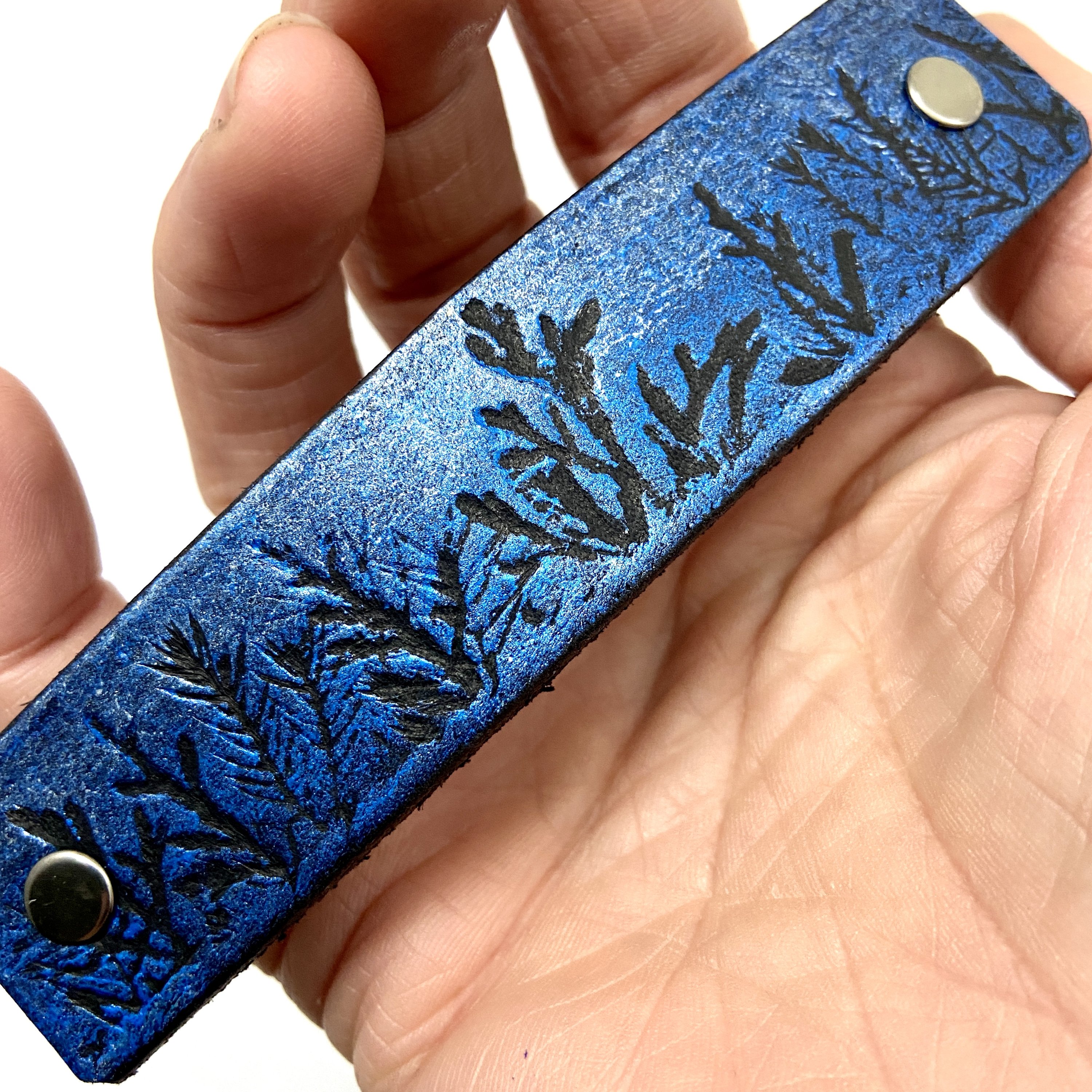 In summary, the Tiny Forest / Trees Blue & Silver Shimmer Leather Hair Barrette is a remarkable blend of artistry, functionality, and sustainability. With its unique design inspired by nature, this hair accessory is perfect for anyone looking to enhance their style while making an eco-conscious choice. Embrace the beauty of the forest and elevate your hair game with this exquisite barrette.