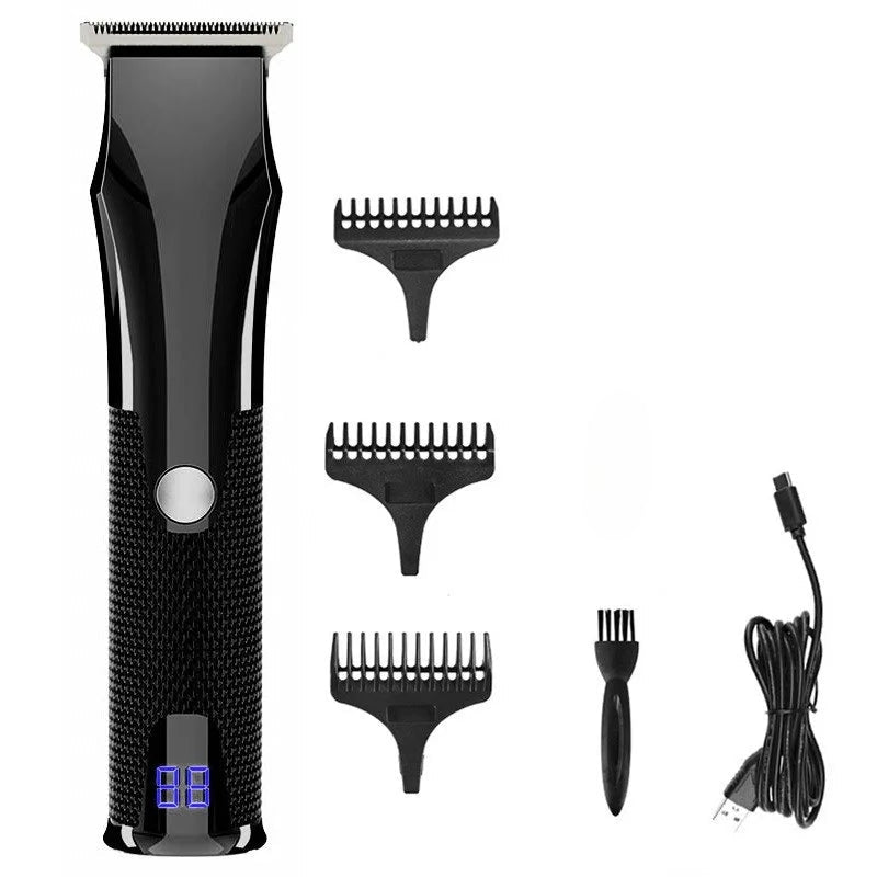 USB Electric Hair Clippers Trimmers designed for men, adults, and kids, featuring a sleek design and digital power display.